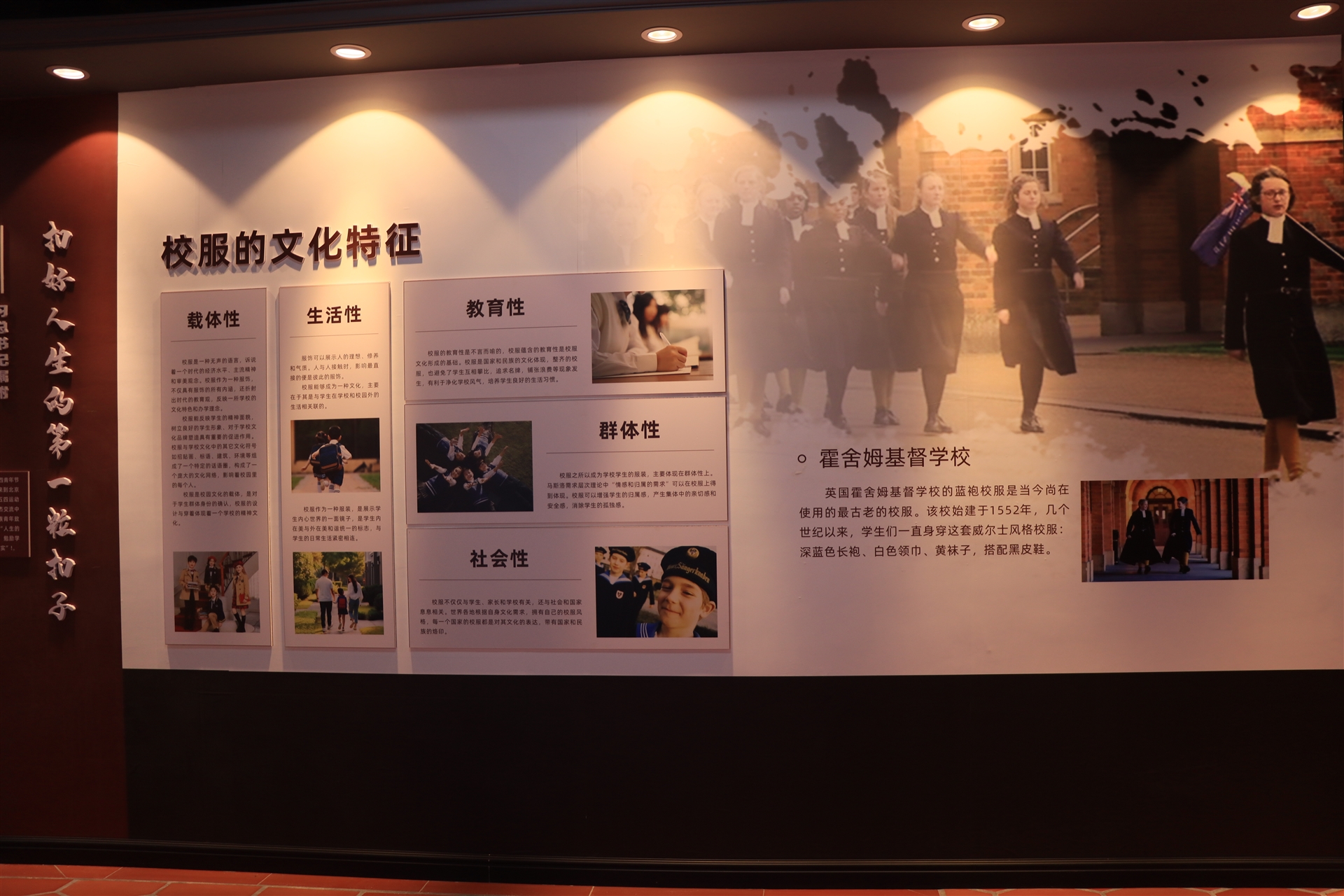 校服文化館以展示學生裝發(fā)展歷史、學生裝文化發(fā)展歷程、不同時期圖文實物、古老紡織設備以及相關工具書的藏館,形象的詮釋出校服作為特定文化載體的真正含義。