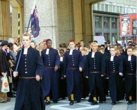 歐洲的校服仍然維持著它一直以為低調(diào)和貴族的傳統(tǒng),被譽為最正統(tǒng)的校服,沿用了多年的皇室制服款式。英國校服款式經(jīng)典、簡潔大方,中學(xué)生必須穿著正統(tǒng)西式校服,男生為正統(tǒng)西裝、正規(guī)皮鞋、需要佩戴領(lǐng)帶,女生也是統(tǒng)一西式正統(tǒng)服裝、正規(guī)女式皮鞋、必須佩戴領(lǐng)花,不論是?;铡⒚被?,無一不顯示著英國人特有的風(fēng)度和氣質(zhì)。也不知是歐洲的學(xué)生更嚴(yán)肅還是校方更強硬,他們的態(tài)度似乎是“學(xué)生就要穿得像個學(xué)生的樣子”。他們對校服的重視程度也不輸給日本,認(rèn)為校服是培養(yǎng)學(xué)生紀(jì)律意識最直接的手段。