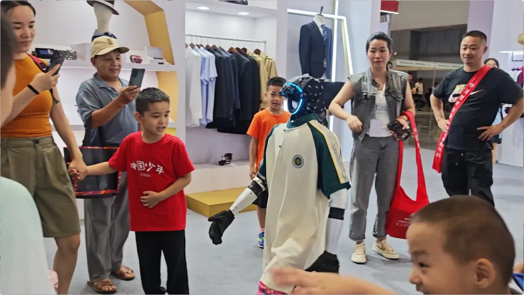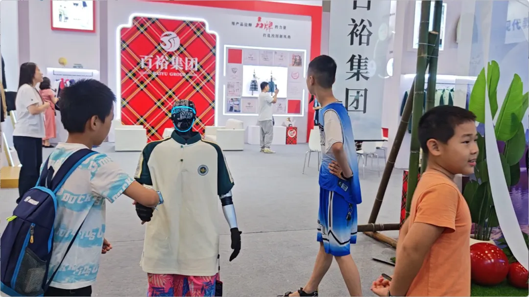 展會(huì)期間,還有智能機(jī)器人身著百裕集團(tuán)校服,在展館內(nèi)巡游并與觀眾互動(dòng)。這一創(chuàng)新場(chǎng)景,成為了全場(chǎng)矚目的焦點(diǎn)。當(dāng)傳統(tǒng)校服文化與前沿AI機(jī)器人技術(shù)相遇,碰撞出的不僅是視覺上的新奇體驗(yàn),更是對(duì)“科技賦能教育,裝備服務(wù)未來”理念的具象化表達(dá)。
