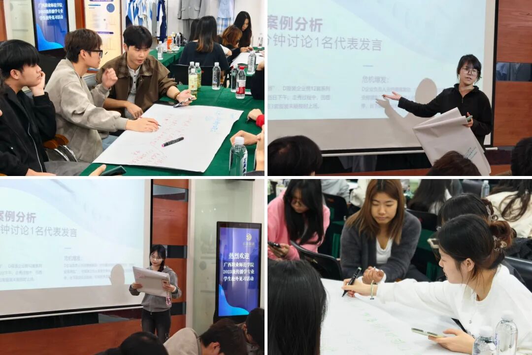 為增強見習活動的互動性,各小組圍繞企業(yè)提供的真實傳播案例展開討論。之后由各小組代表上臺進行匯報發(fā)言。這一環(huán)節(jié)鍛煉了學生的分析表達與團隊協作能力。