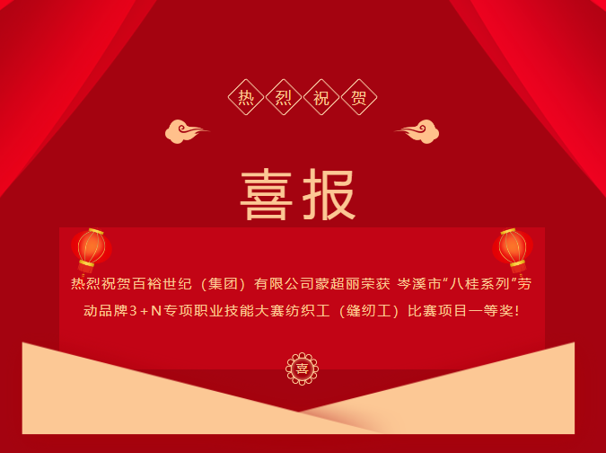 百裕世紀(jì) (集團(tuán))有限公司線下車間職工超麗榮獲紡織工 (縫工)比賽項(xiàng)目的一等獎(jiǎng);羅婷婷、陳杏娟2位職工榮獲二等獎(jiǎng);梁鳳、羅獻(xiàn)鳳、覃廣英、莫清云、廖芬藝5位職工榮獲三等獎(jiǎng);陳海蘭、陳志平、張紅潔等12名職工榮獲優(yōu)勝獎(jiǎng)。