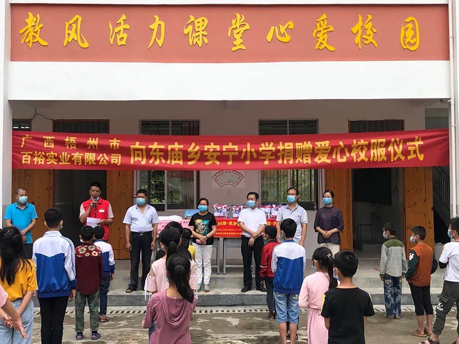 東廟鄉(xiāng)山多地少,地理位置偏僻,全鄉(xiāng)經(jīng)濟基礎(chǔ)比較薄弱。百裕集團自進駐河池市以來,高擎黨旗引領(lǐng),不斷推進公益事業(yè)發(fā)展,通過熱心兒童公益、關(guān)注精準(zhǔn)幫扶、建立扶貧車間等形式,在教育、文化、產(chǎn)業(yè)等各方面,在當(dāng)?shù)刂乒妫愿叨鹊呢?zé)任感履行社會職責(zé)。